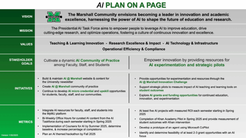 In 2023, Marshall University’s President, Brad D. Smith, took a visionary step by establishing the Presidential Task Force on AI.