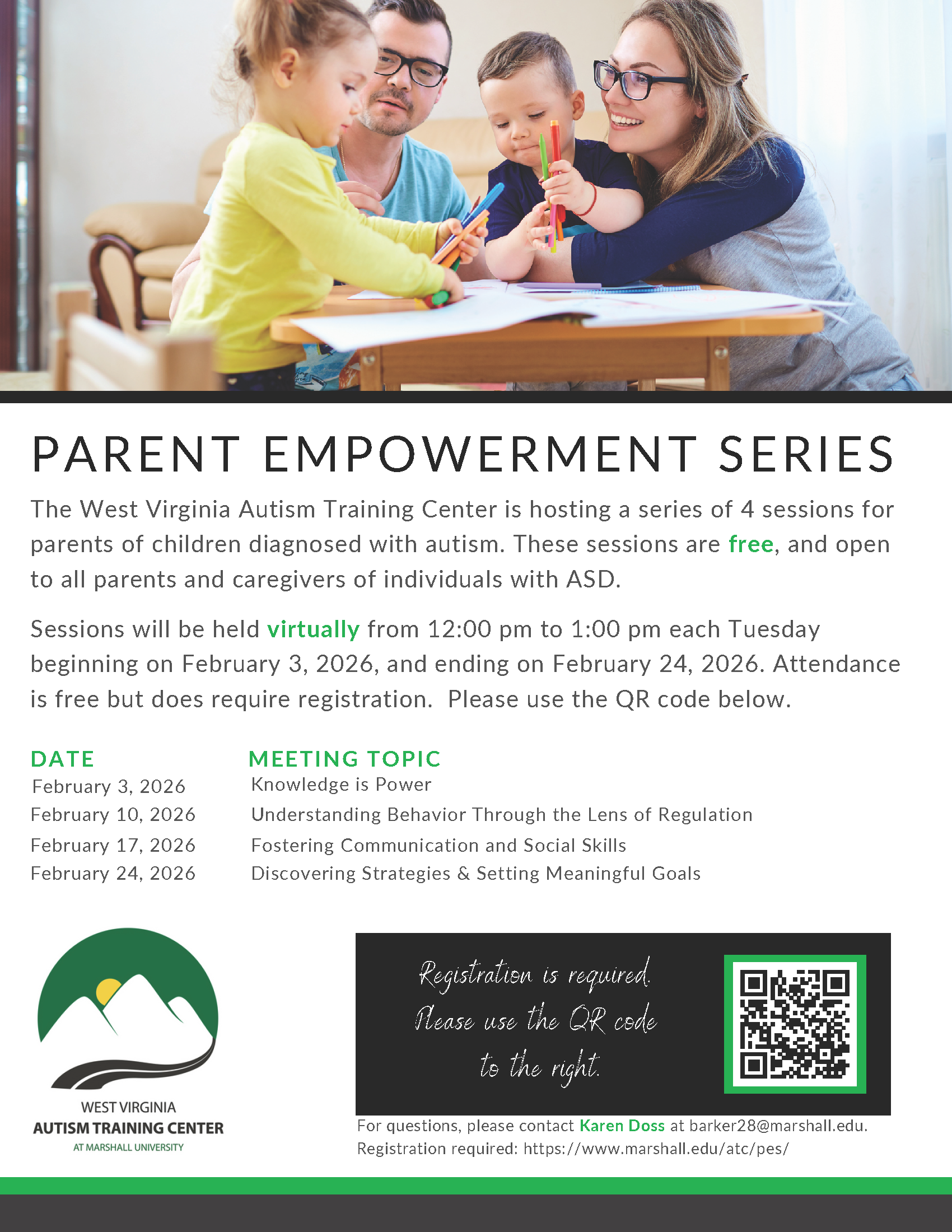 The Parent Empowerment Series is a program of 4 weekly sessions for parents of children diagnosed with autism. These sessions are free, and open to all parents and caregivers of individuals with ASD.
