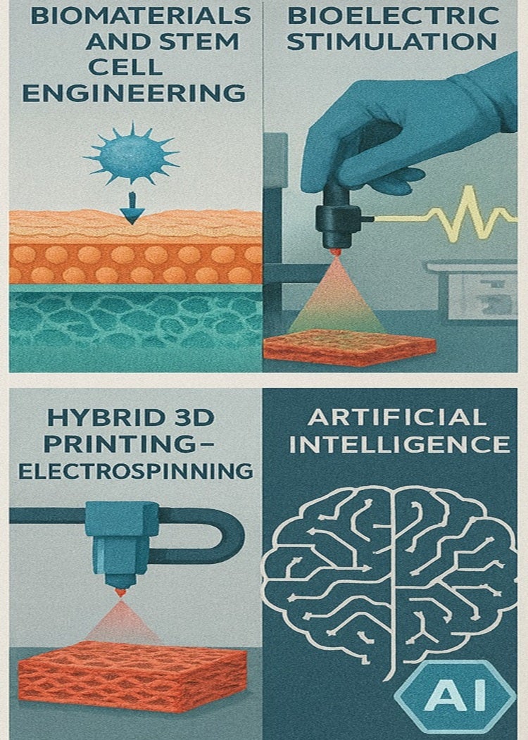 She also leads several complementary research projects, including the fabrication of cotton-based nanofibers as biodegradable scaffolds, the development of hybrid 3D printing–electrospinning systems for creating multilayered ECM-mimicking structures, and the integration of artificial intelligence for predictive modeling in healthcare.