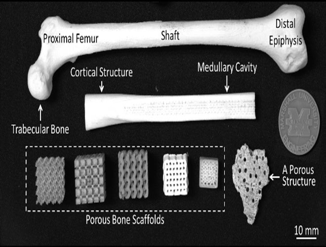 This project is supported by the National Aeronautics & Space Administration (NASA) under Award Numbers 80NSSC22M0249 and 80NSSC19M0054, focuses on implant fabrication using advanced manufacturing techniques for bone tissue engineering in collaboration with the School of Medicine at Marshall University. This multidisciplinary project integrates mechanical engineering, biomedical science, and artificial intelligence (AI) principles to address one of the most pressing challenges in regenerative medicine, i.e., designing and fabricating patient-specific bone implants that can effectively support and stimulate tissue regeneration. The research problem at the core of this project arises from the complex and interdependent influences of material, process, and biological factors on implant performance. Despite significant advancements in scaffold design and fabrication, it has remained largely unknown how these factors collectively determine the structural integrity, mechanical functionality, and osteogenic (bone-forming) potential of the resulting implants. Variations in material composition, fabrication parameters, pore geometry, and cell-related factors can significantly impact the biological response, potentially leading to inconsistencies in bone growth and integration. Therefore, there is a need to identify the fundamental mechanisms and underlying relationships that govern scaffold fabrication, osteogenesis (bone formation), and ultimately, the fracture-healing process. By identifying and investigating these relationships through experimental characterization and computational modeling, this project aims to establish predictive frameworks and design principles that enable the fabrication of patient-specific bone implants. The outcomes of this project are expected to advance the frontier of bioprinting technologies and contribute to the development of self-healing and clinically viable bone implants that improve recovery outcomes for patients with complex injuries or defects