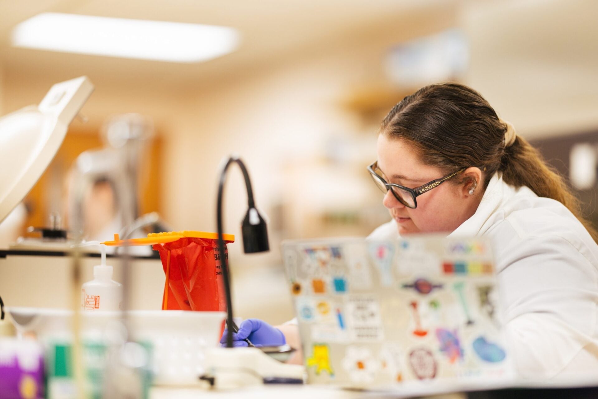 - Students must have completed all required pre-requisite coursework in the AAS MLT curriculum with a minimum of “C” in order to be eligible for MLT clinical rotations (CLS 270, 271, 272, and 273). Therefore, students who do not make a “C” in ALL required coursework in the MLT curriculum will not be permitted to attend clinical rotations; this means that if a student makes a below a “C” during the spring term in any required course and is already begun summer clinical rotations before this grade is known, the student will be removed from rotations, and will be expected to retake those courses and obtain a “C” or greater before being permitted to attend clinical rotations. Clinical rotations are offered in the summer and fall terms only, therefore, if a student fails to complete all required coursework with a “C” or greater during the summer prior to the fall rotation, then that student must participate in directed independent study for all CLS courses, as well as complete required coursework with a “C” or greater, and wait until the following summer to attend clinical rotations.