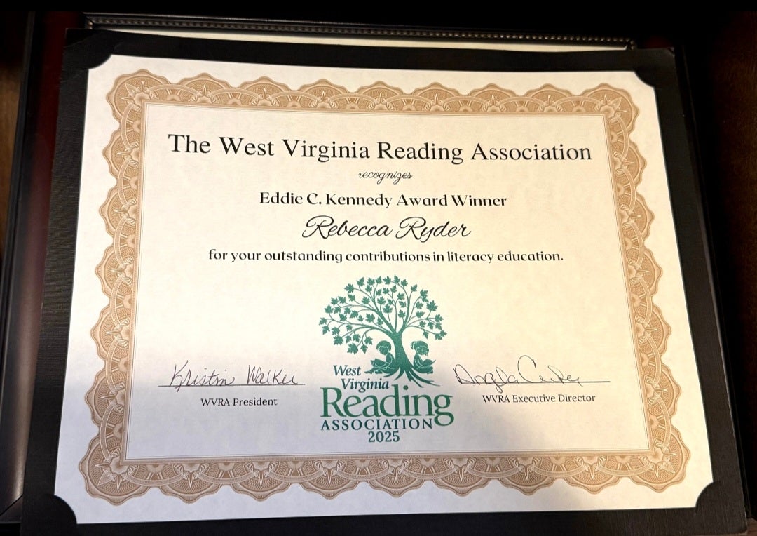 CWVWP Teacher Consultant, Becky Ryder, was honored with the Eddie C. Kennedy Award for her outstanding reading instruction at the 69th annual WVRA Conference!