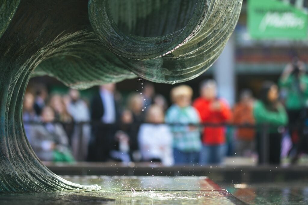 The choir and the crowd gathered near the fountain, its waters soon to be stilled for a moment of reflection.