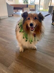 Arya is a five year old olden retriever who enjoys going for daily walks in her neighborhood and chasing squirrels, which she finds in abundance on Marshall’s campus. She loves attention, treats, and her stuffed animals which her family calls her “puppies”. Arya is a pure cuddlebug who loves to give and receive hugs. She enjoys spending time with people of all ages. In addition to volunteering on campus at events and in Gibson Hall , she volunteers at local elementary and middle schools. If you are having a bad day, Arya will be there to hold your hand through it.