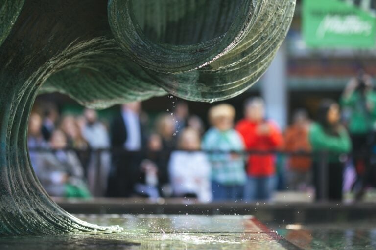 During the ceremony, the fountain’s water is turned off to honor those lost, symbolizing a moment of reflection and unity.