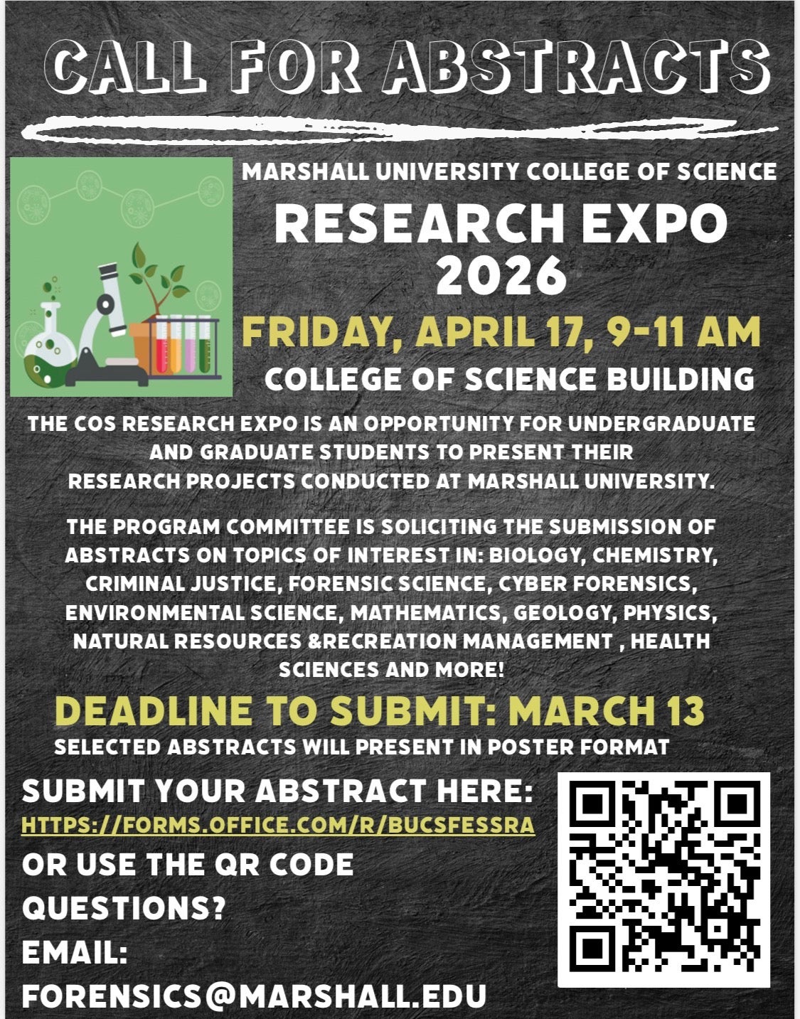 Marshall University College of Science Research Expo 2026, April 17 (9-11 am)
