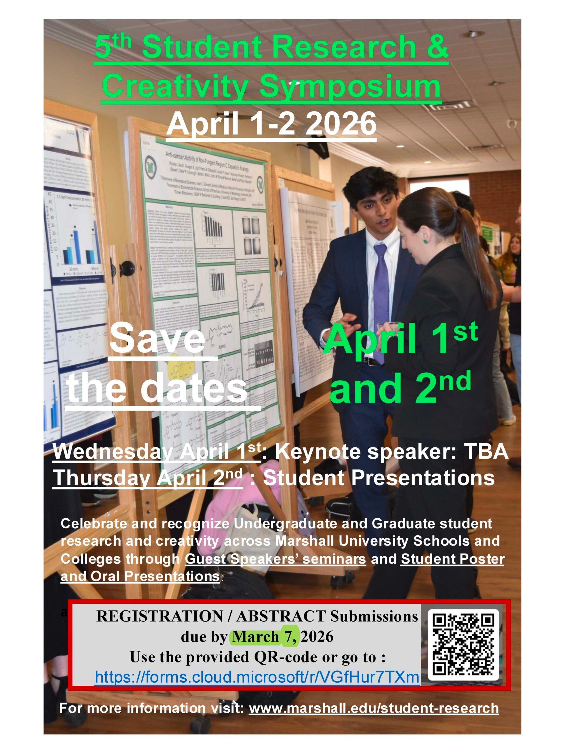 – The Deadline for Registration to the 2025 Marshall University Student Research and Creativity Symposium has been extended to March 7th, 2025 at 11:59pm.