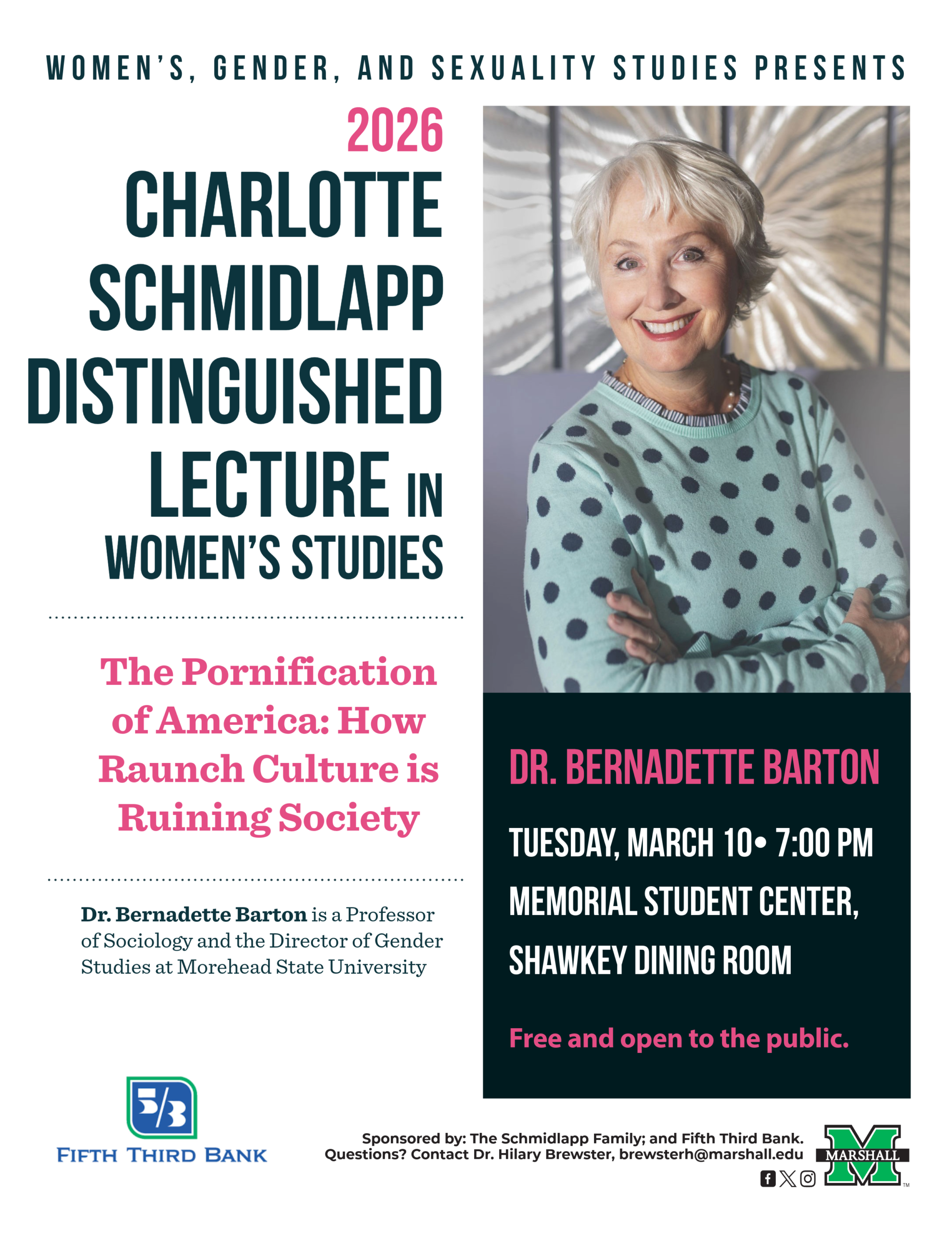 Dr. Bernadette Barton will present The Pornification of America: How Raunch Culture is Ruining Society.