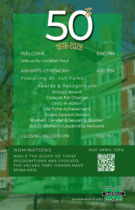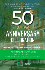 The Women of Marshall Awards honor individuals whose leadership, advocacy, scholarship, and service advance gender equity, inclusion, and community empowerment at Marshall University and beyond. Nominations should provide specific examples demonstrating impact, leadership, and alignment with the mission of the Women’s Center.